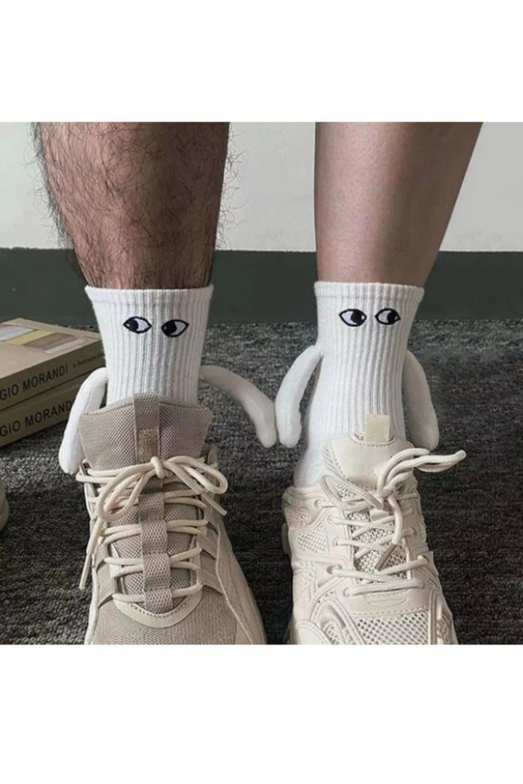 2'li Beyaz Mıknatıslı El Ele Tutuşan Çorap Arkadaşlık Moda Spor Çorabı